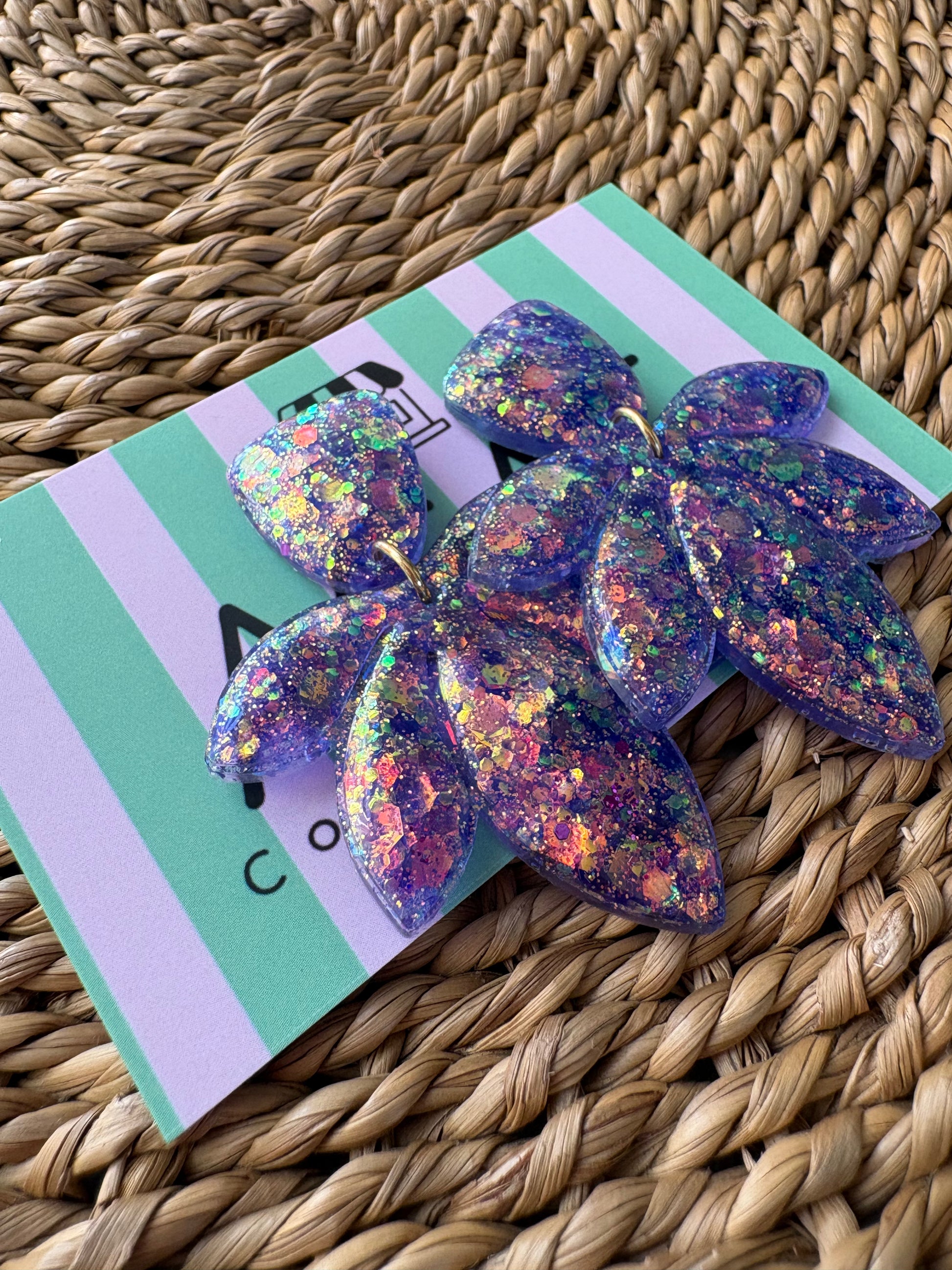 Ces boucles d’oreilles au design floral et graphique séduisent par leur forme originale et leurs reflets irisés. Chaque mouvement révèle une palette de couleurs pastel scintillantes, pour un bijou résolument lumineux.