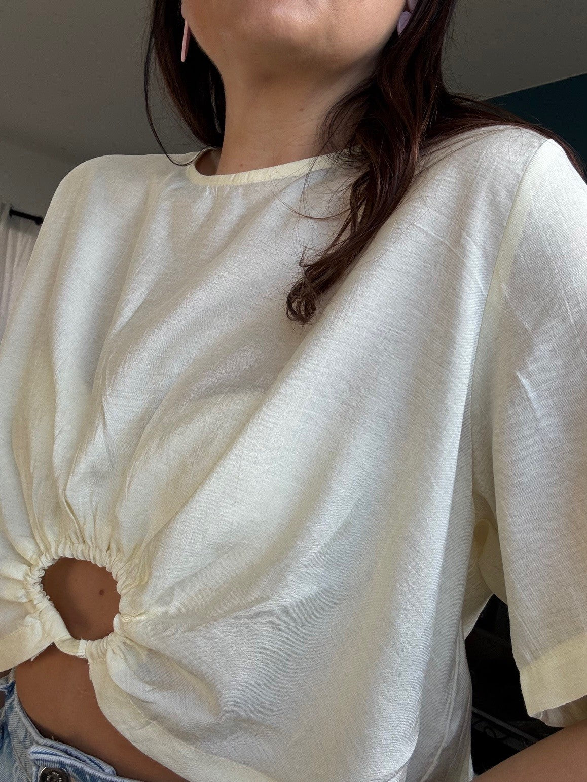 Un top jaune pastel lumineux qui apporte une touche fraîche et féminine à vos looks. Son détail froncé avec ouverture subtile à l'avant donne juste ce qu'il faut de modernité pour twister une tenue simple.